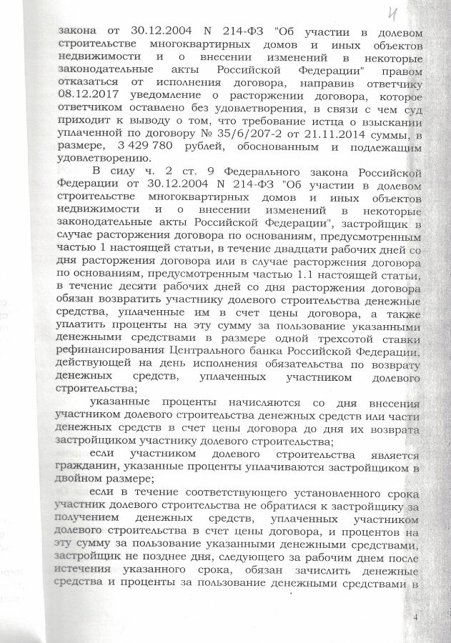 Однако Воронину М.Д. удалось найти выход из ситуации и договориться с застройщиком о возврате денег за квартиру и выплате сверх того некоторой компенсации (не такой большой как присудил суд, но все-таки это компенсирует и ожидание и инфляционные потери клиента).