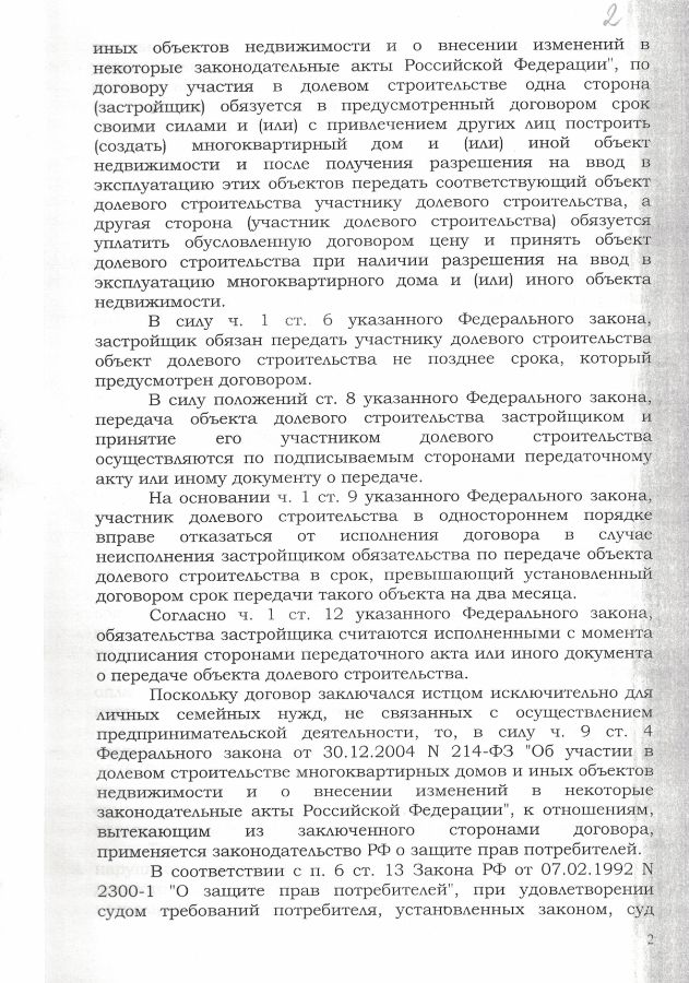 Клиент заключила договор участия в долевом строительстве с застройщиком, однако застройщик, в силу ряда причин, не смог обеспечить передачу квартиры в срок, установленный договором.