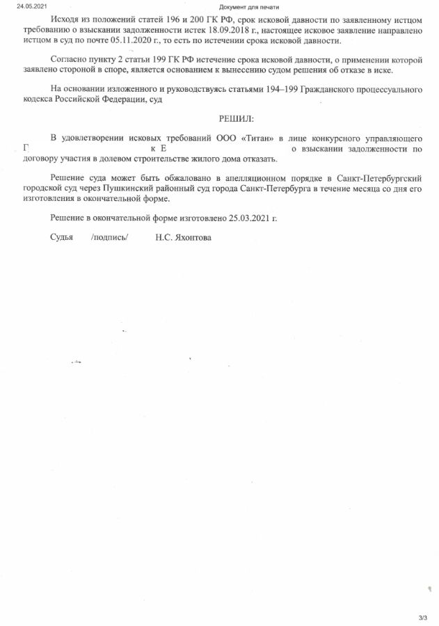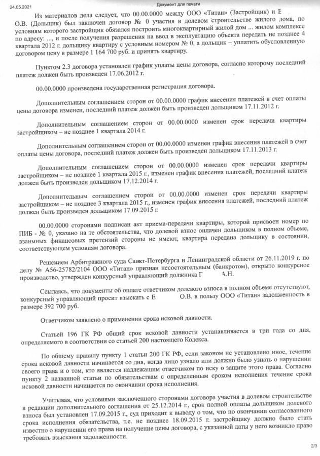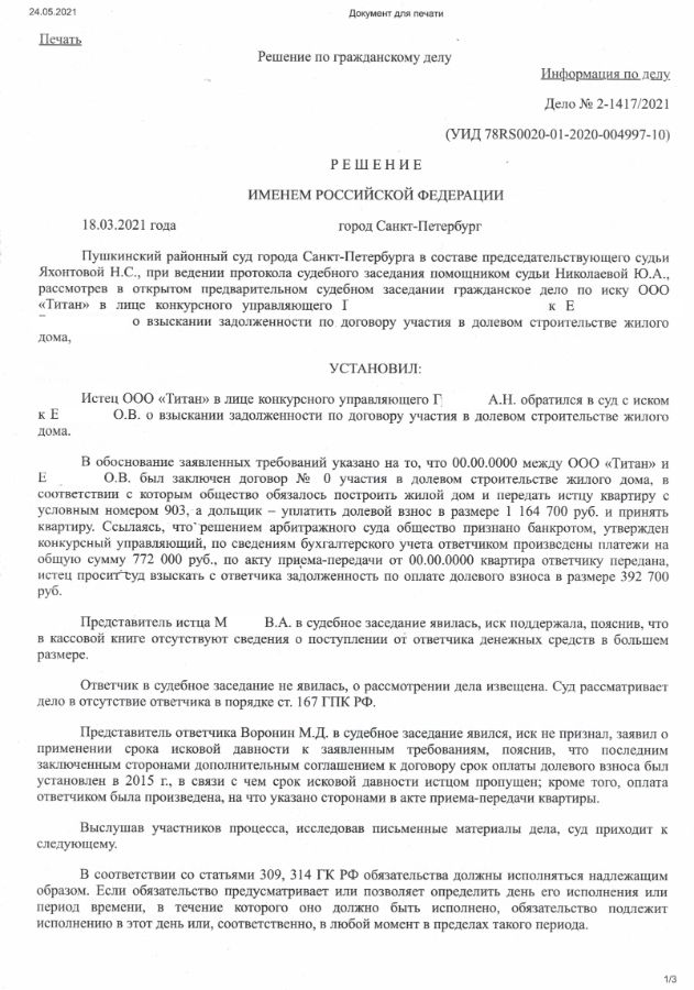 Застройщик впоследствии был признан банкротом, а конкурсный управляющий, не обнаружив документа, подтверждающего оплату, обратился сначала с претензией, а затем с иском в суд о взыскании с клиента долга по договору долевого участия.