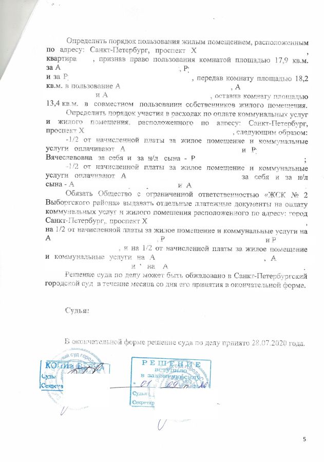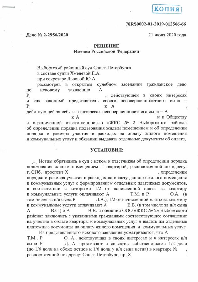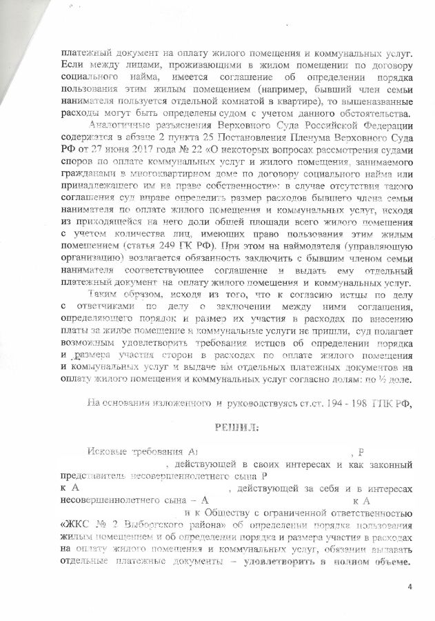 Кроме того, суд разделил счета на оплату коммунальных услуг.